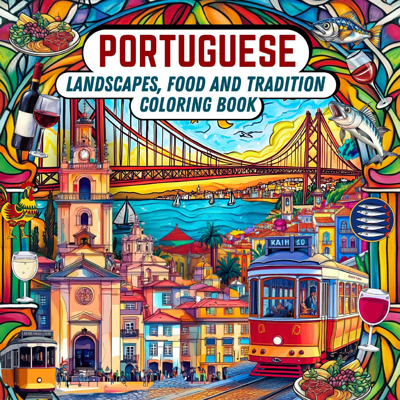 "Coloring Portugal: A Journey Through Tradition." Featuring stunning illustrations of iconic landscapes and cultural motifs